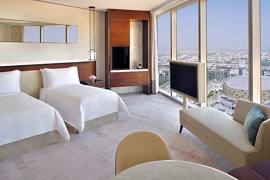 This double room offers views of the Downtown Dubai skyline, twin beds and a built in closet. The rooms connect via a foyer to the Executive suite in case a larger living area is desired.